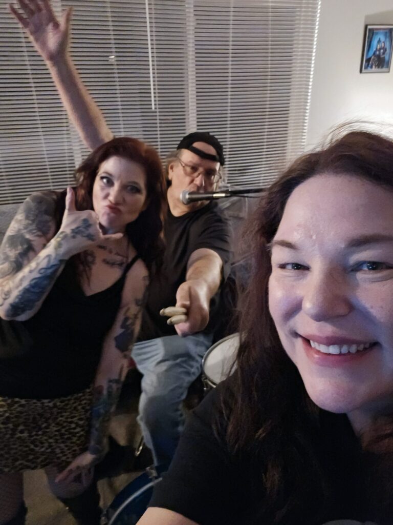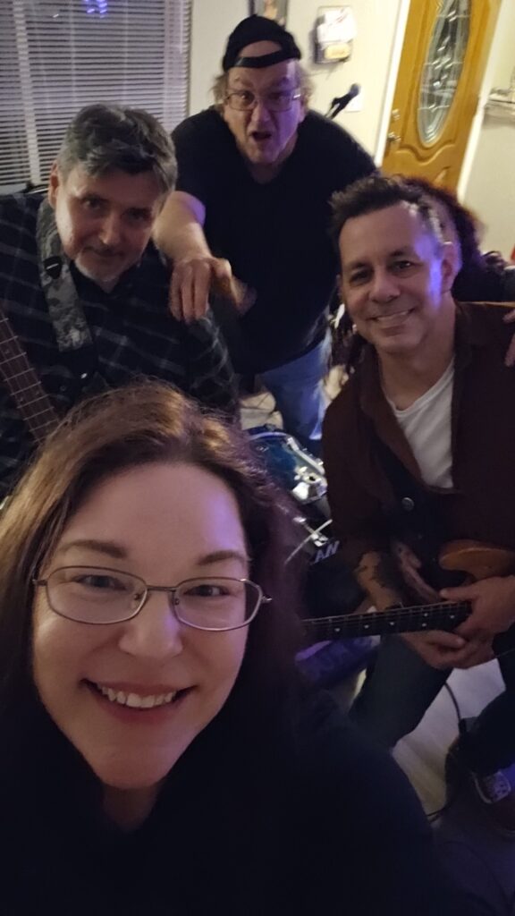 Dymin has been singing her whole life. She took up singing as a child in church choirs and just for fun and hasn’t stopped. She also writes some of the band’s songs.